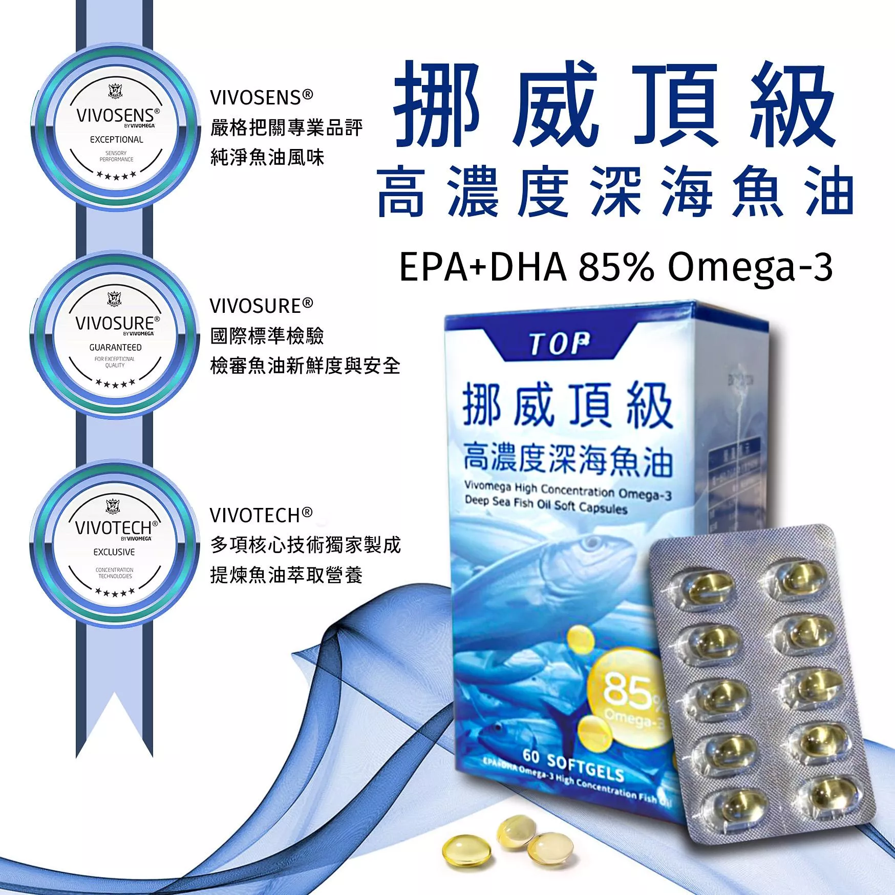 • 採用歐洲頂級Vivomega魚油原料